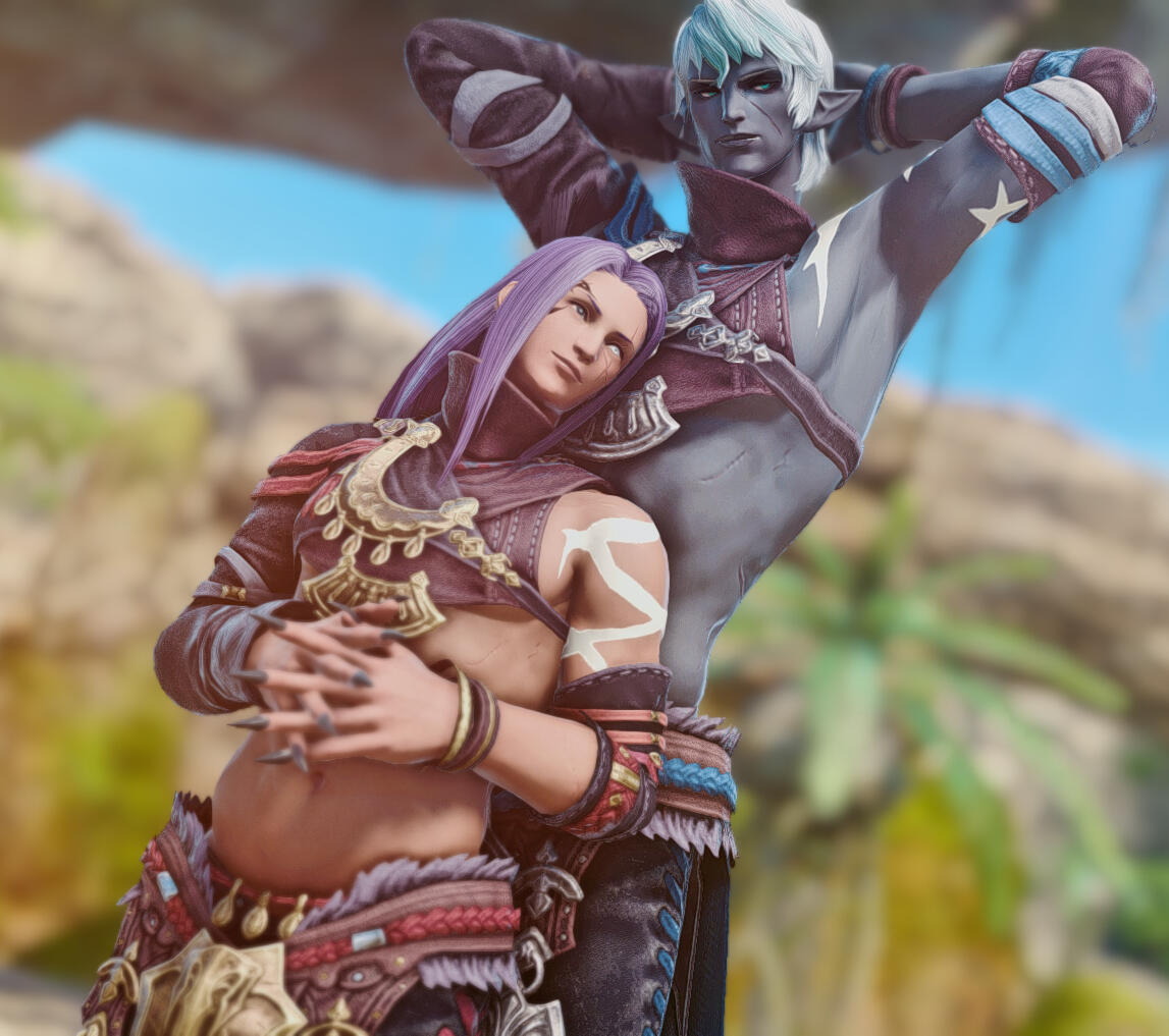 Mysterious as he is elegant and intriguing, Taavi Aldamu is an aetheric anomaly and someone that Junius has taken a strong devotion to. Ever close, their bond is solidified by familiarity and something more.They are rarely seen without each other, often conspiring together in dark corners or traveling to distant lands for research, leisure, or both. The support and love between the Hyur and the Ashkin is unwavering, and they caution letting others approach.⌠Other Complications -- er, "Friends"⌡: